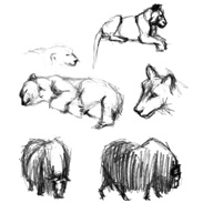 Polar bear (Top right), lioness (top left) and musk ox (bottom).